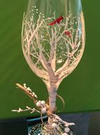 This organic design is hand-made with twine and embellishments . Hand-painted designs can be added along with personalizing with names and dates. Retail $65 (Single glass) Set of (2) $128